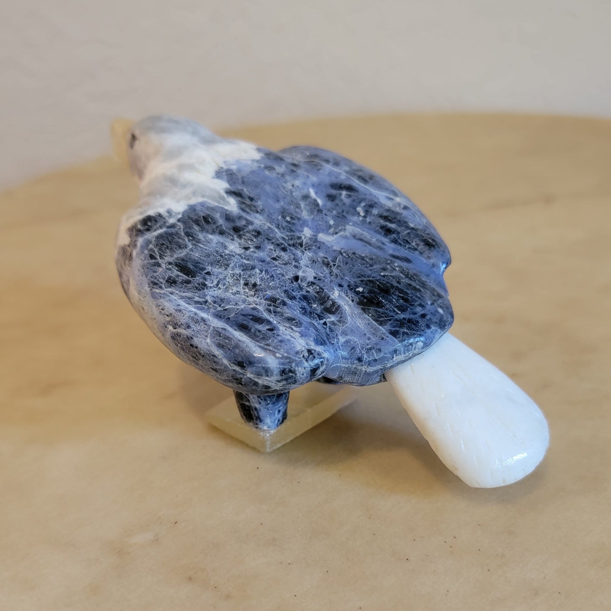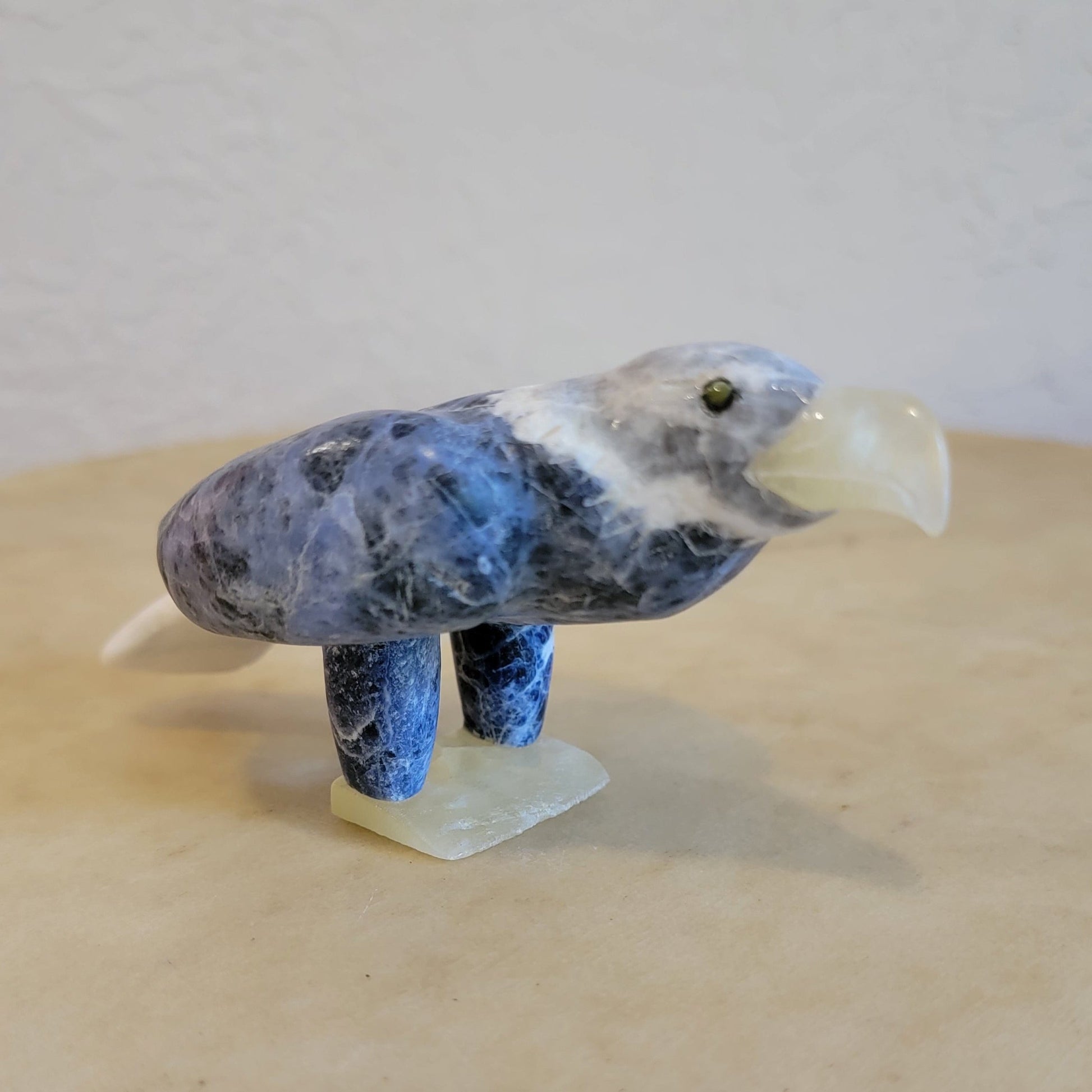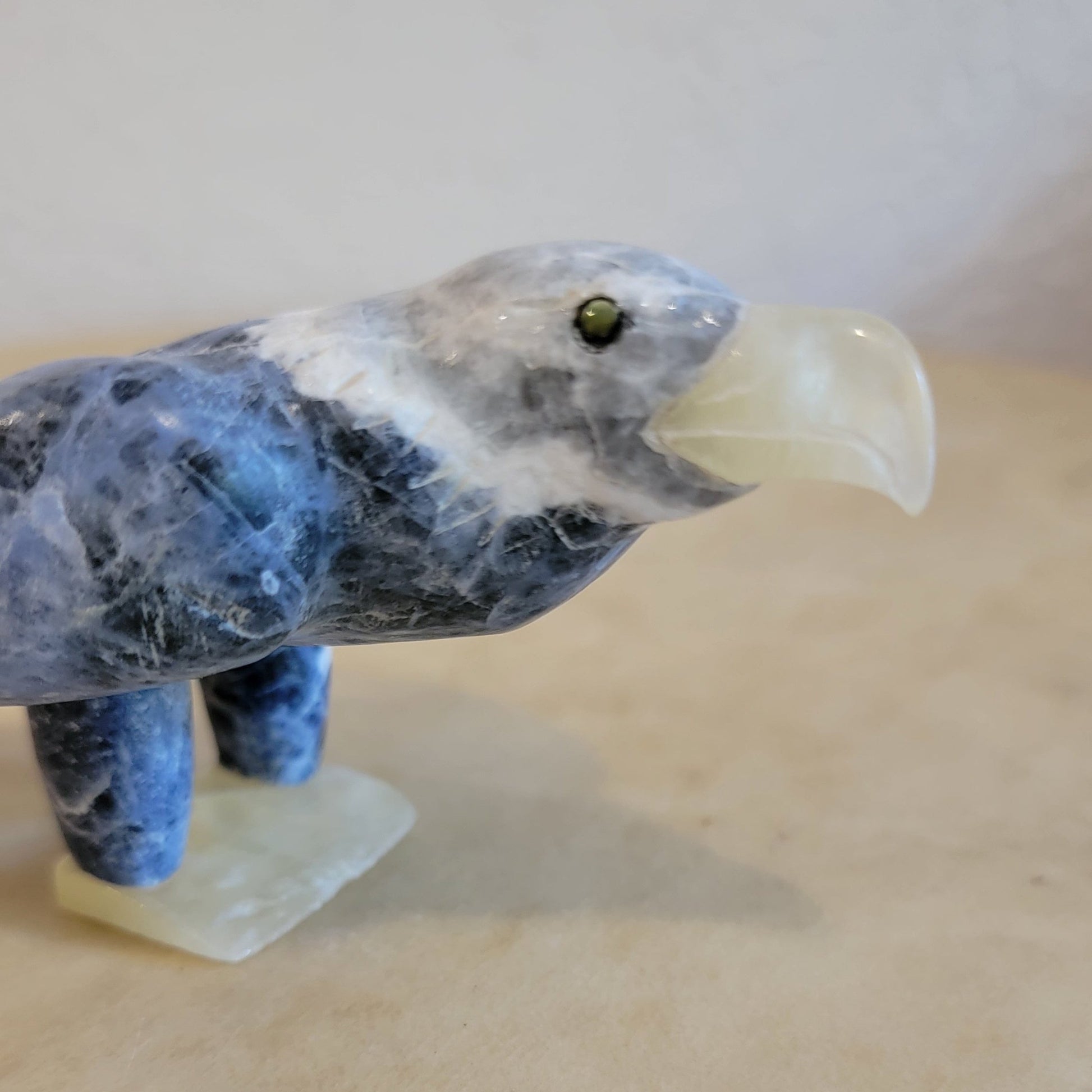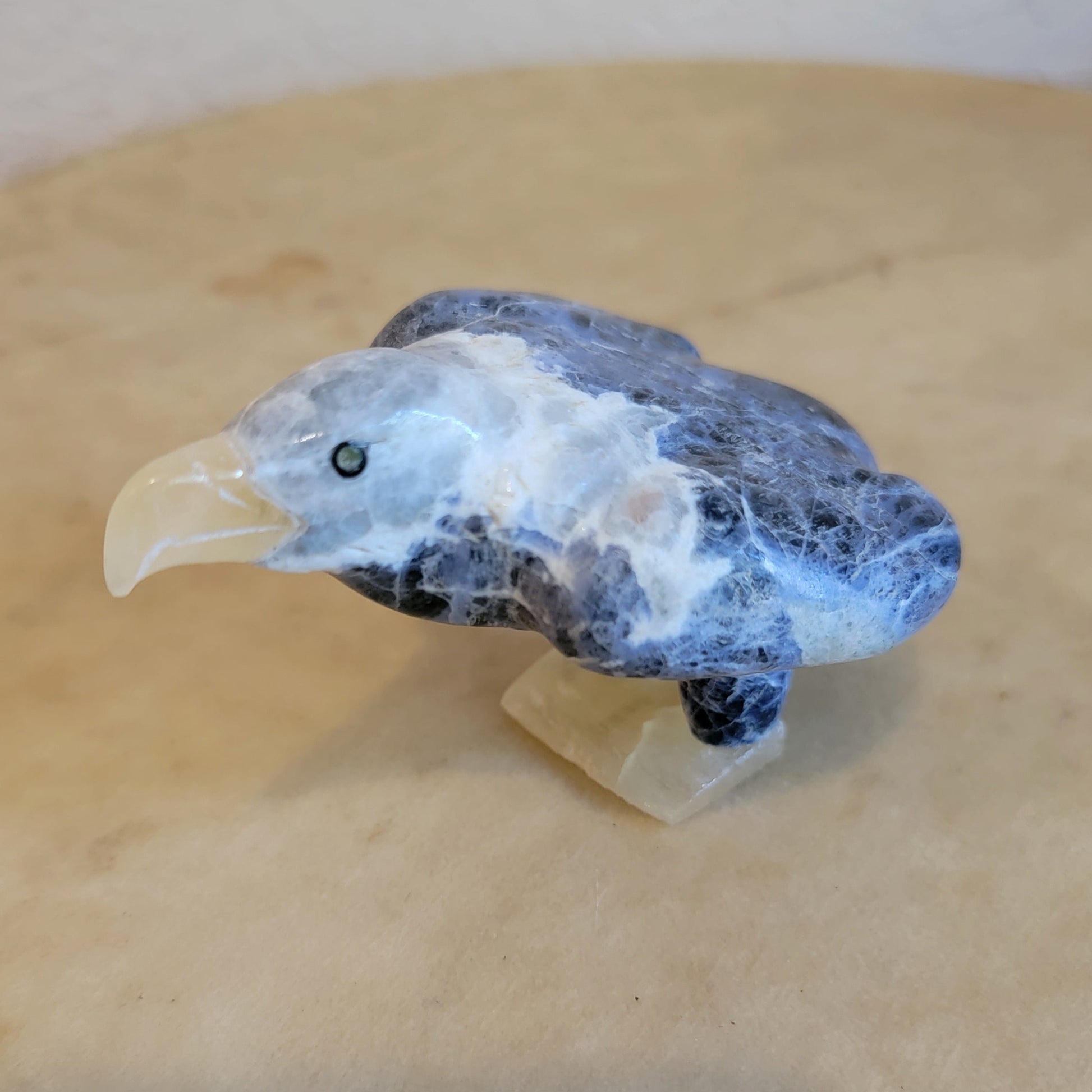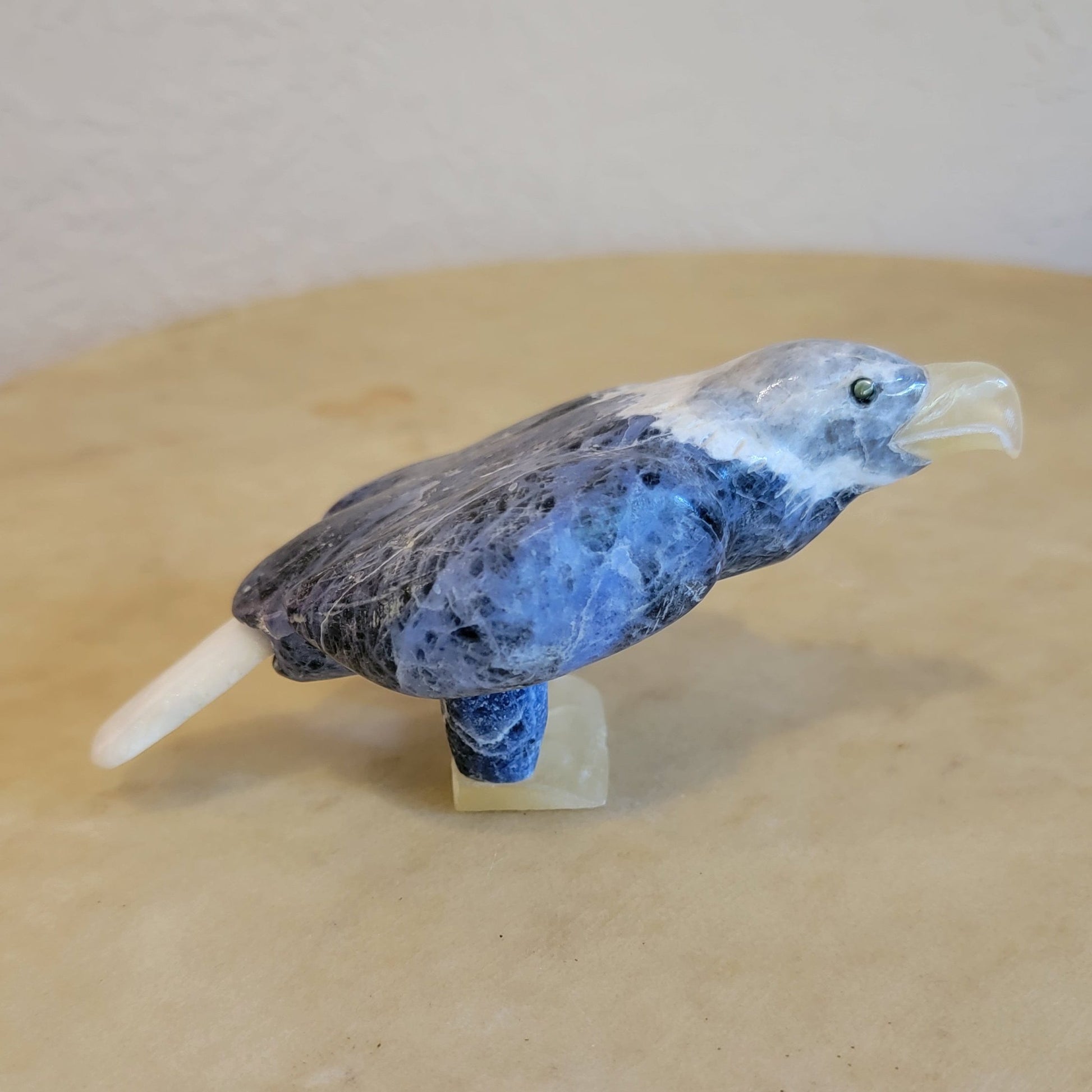 Medium: Sodalite with Jet and Hematite eyes/ Alabaster beak and base/ white marble tail