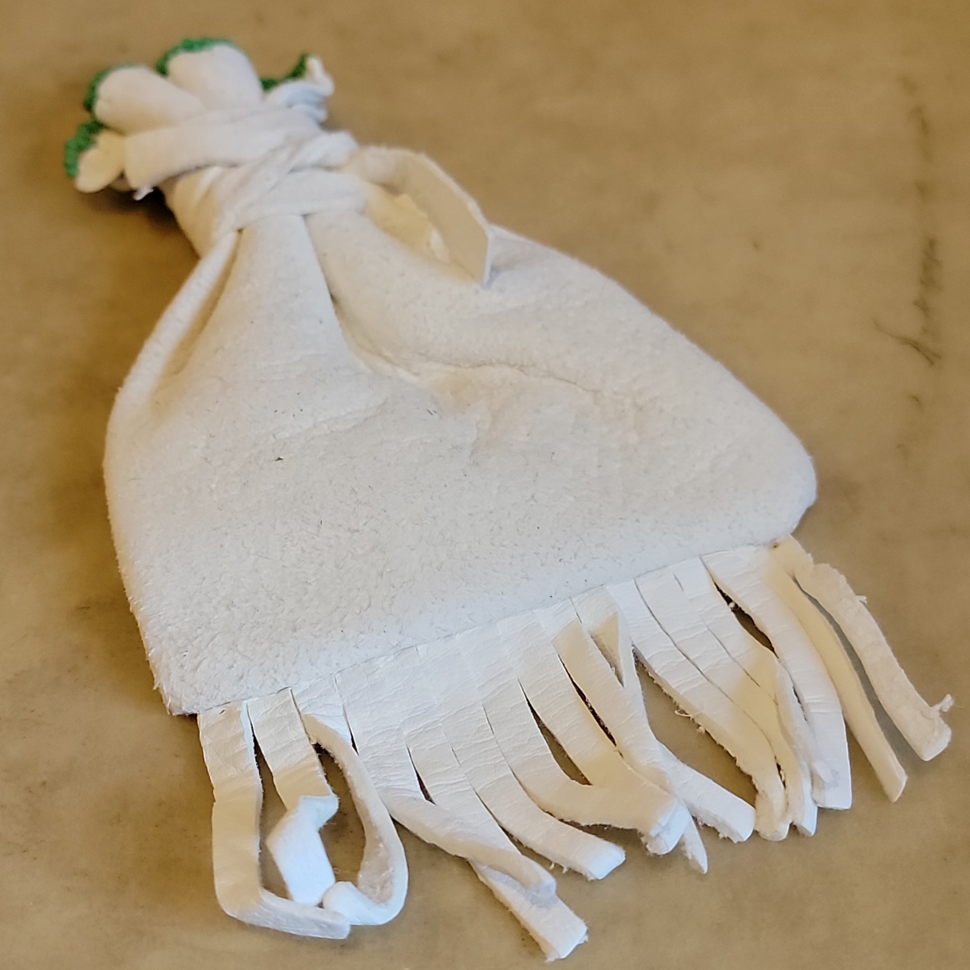 Wrap around tie sewn in place at back/ Perfect for that special fetish or keepsake!